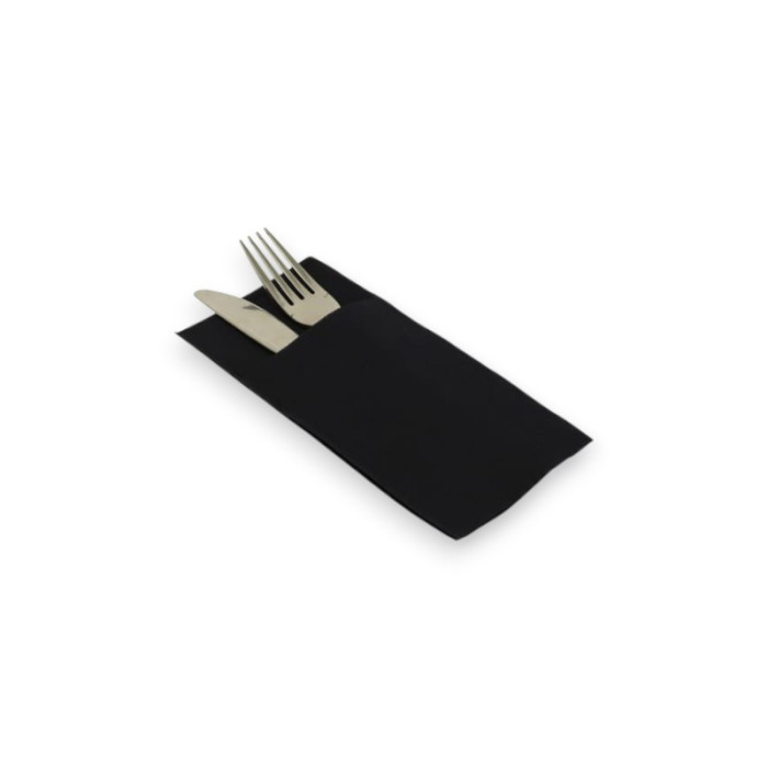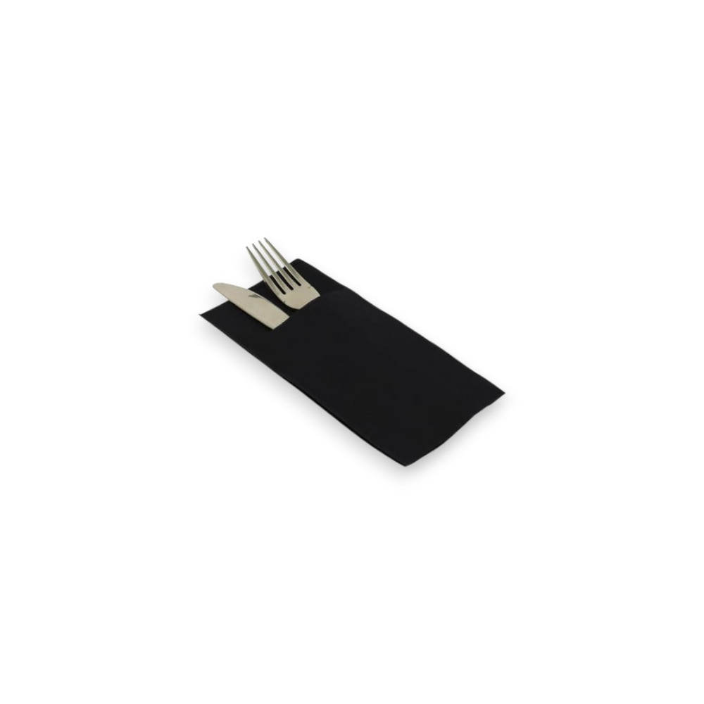 Servilletas canguro punta punta porta cubiertos en color negro.