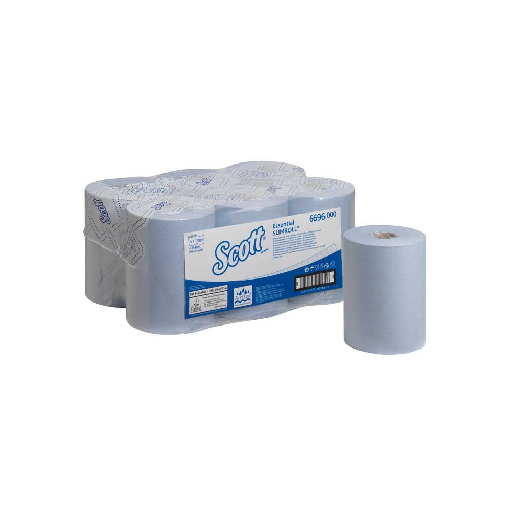 Scott® Essential™, diseñadas para ayudarle a cumplir las normas de higiene de aseos en entornos de alta frecuencia sin comprometer la calidad. Scott® Essential™ Slimroll™ está diseñado para ser utilizado en el secado de manos en entornos críticos de contaminación que exigen consistencia. Estos rollos secamanos ofrecen un secado de manos diario fiable en entornos de aseos con espacio limitado. Este papel cuenta con la etiqueta ecológica europea para la garantía medioambiental y también con una certificación para estar en contacto con los alimentos. Estos secamanos cuentan con tecnología de compresión para aumentar la sostenibilidad mediante la reducción del almacenamiento y el transporte.