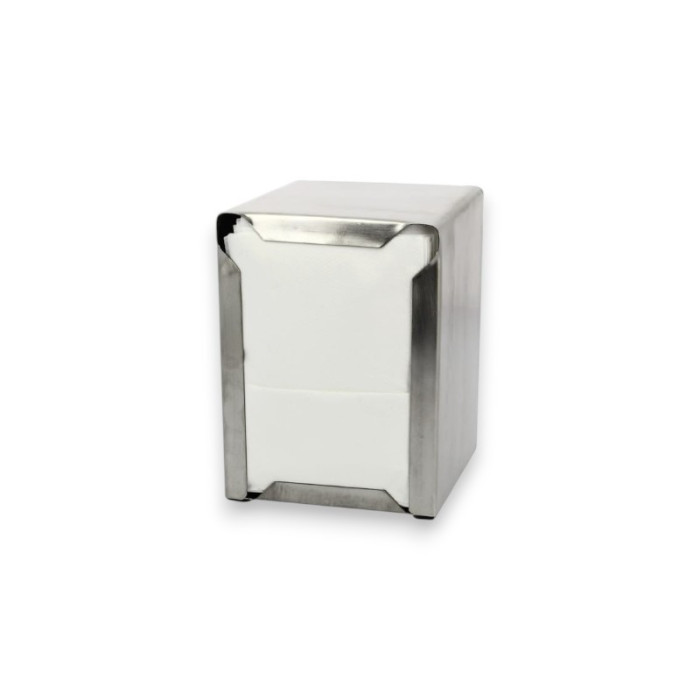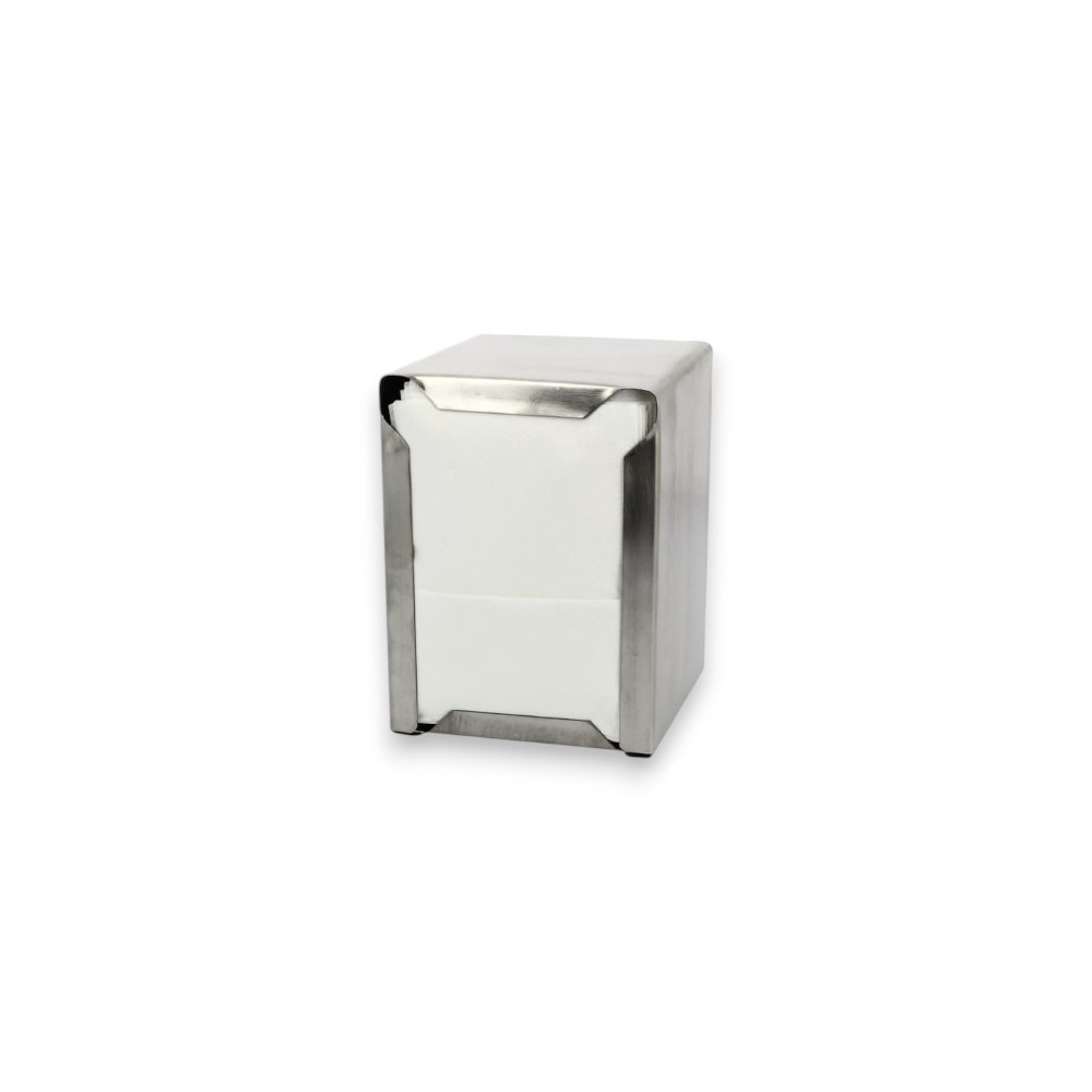 Práctico dispensador para mini-servis de 17x17, que le permite proteger las servilletas y garantizar una mayor higiene.