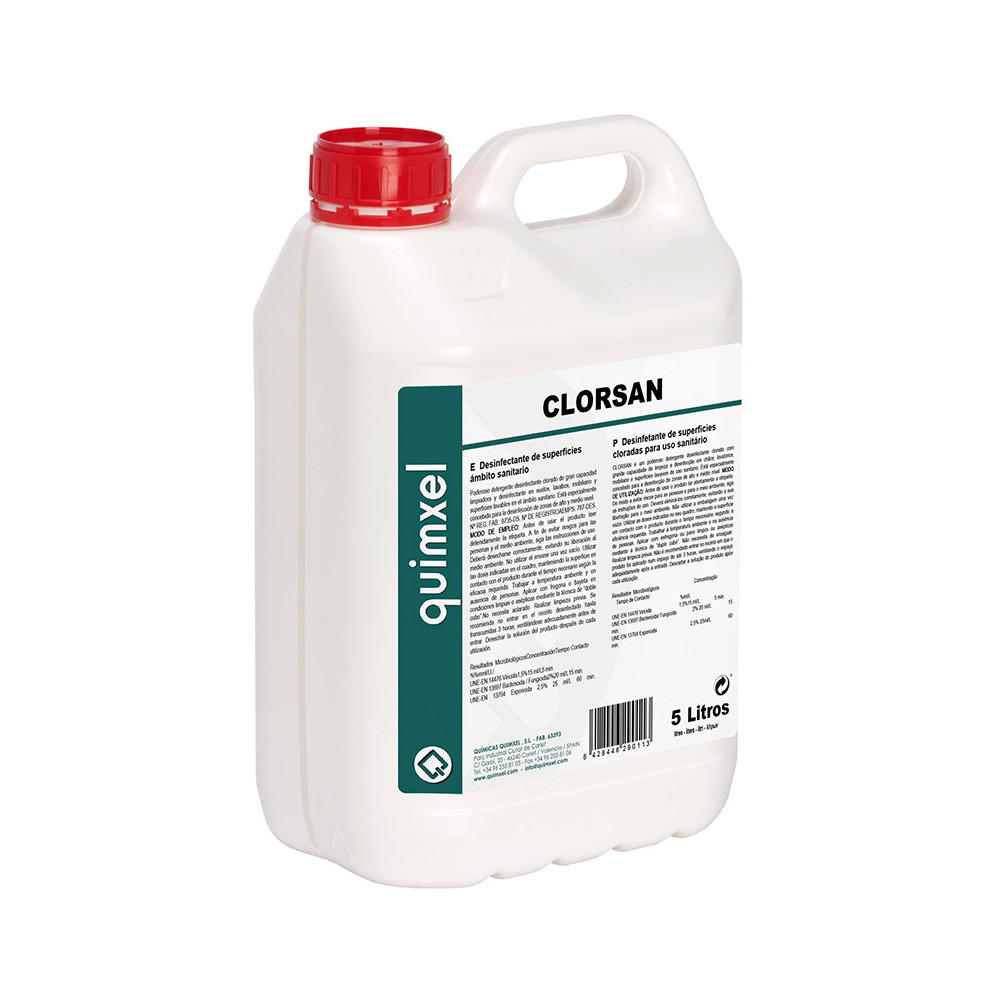 Poderoso detergente desinfectante clorado de gran capacidad limpiadora y desinfectante en suelos, lavabos, mobiliario y superficies lavables en el ámbito sanitario.