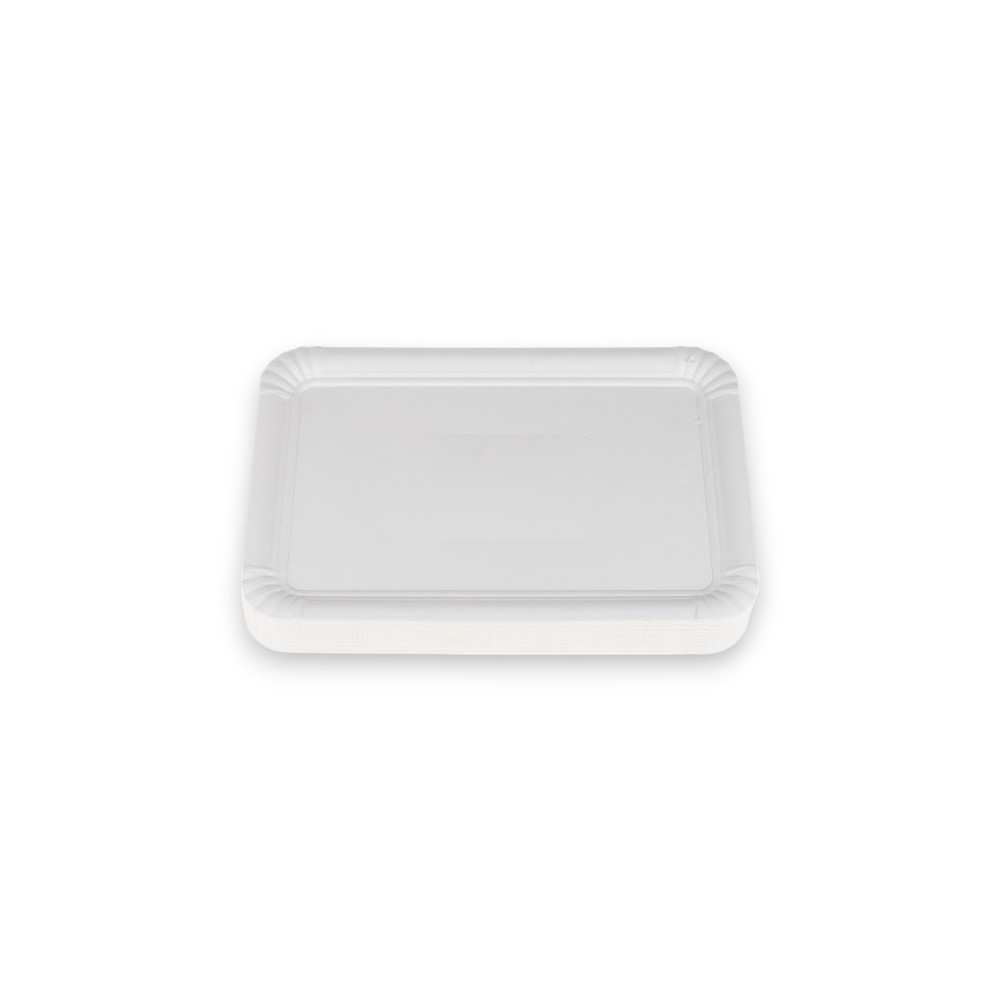 Bandeja de cartón blanco, apta para hostelería y restauración, Bandejas ligeras y especiales para el transporte o conservación de todo tipo de alimentos.