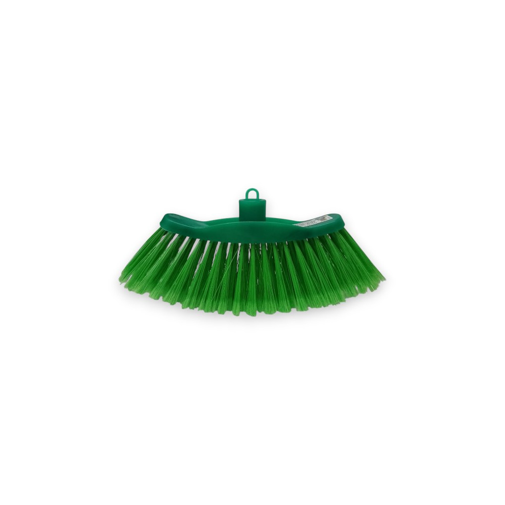 Escoba clasica, con cuerpo fabricado en plastico reciclado (varios colores), y fibras suaves.